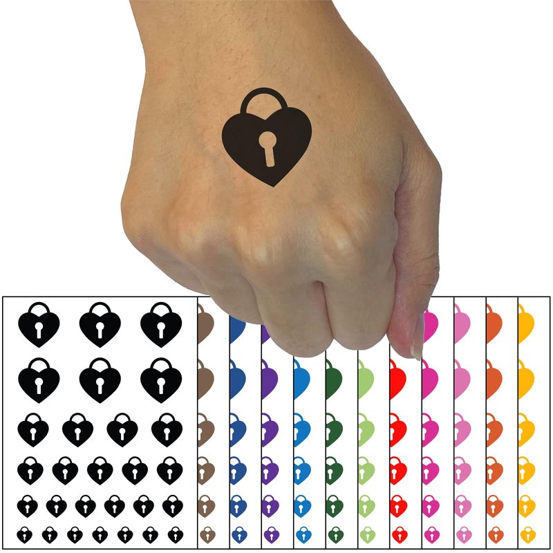 Heart Lock Key Temporary Tattoo Water Resistant Fake Body Art Set Collection - Purple (One Sheet)