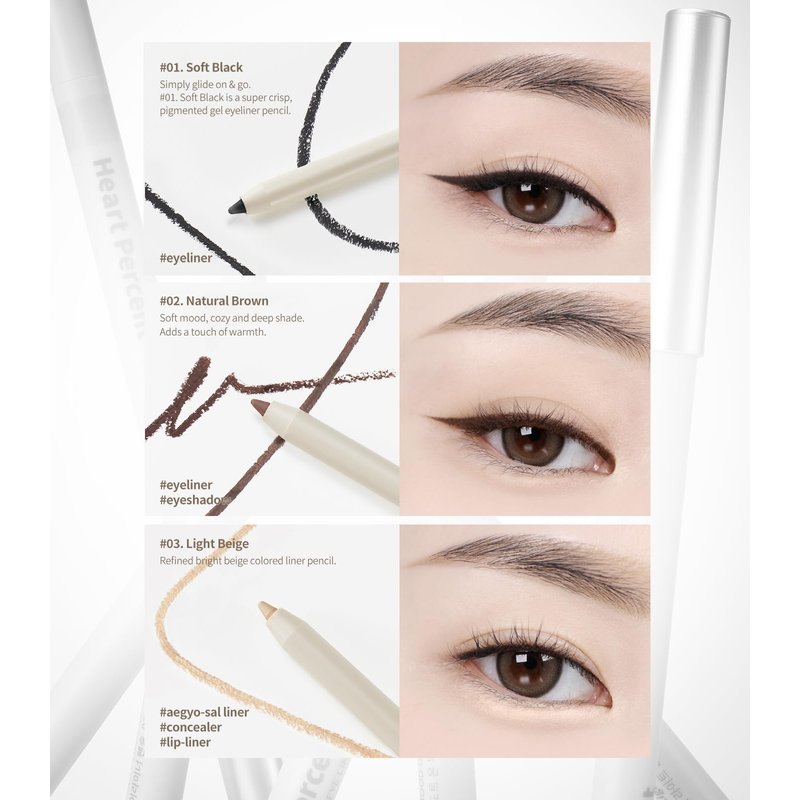 Heart Percent Dote On Mood Gel Eyeliner Pencil, Long-Lasting Waterproof Smudge Proof Smooth Retractable Eye Liner Pencil with Built-In Sharpener (03. Light Beige)