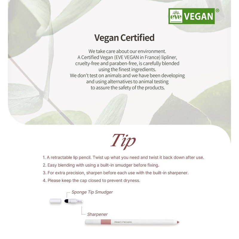 - [Perfect Mood Board] Finally we custom the lip pencil shades based on the personal color analysis. What is your skin's undertone? Warm, Cool, or Neutral? With a wide range of lip pencil colors, Heart Percent Dote On Mood Lip Pencil Slim allows a gorgeous makeup according to your own personal color. Our MLBB lip crayon liner options are endless!