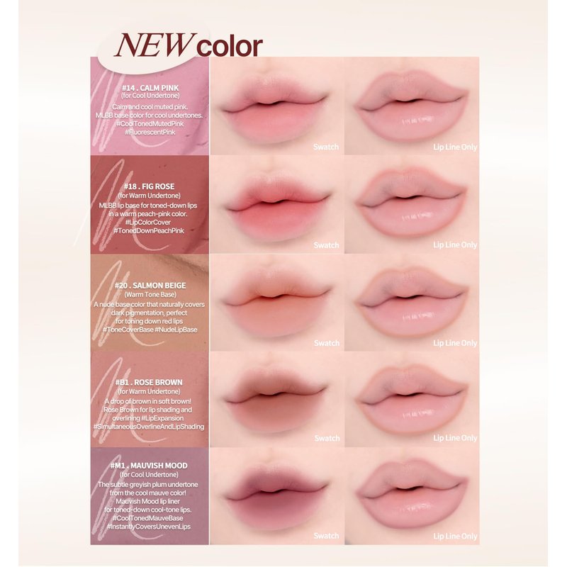- [#14. Calm Pink] Perfect if you have cool undertones. Calm and cool muted pink. MLBB base color for cool undertones. #CoolTonedMutedPink #FluorescentPink. Wear alone or under lipstick for color that won’t budge. Easily define your lip with this creamy lip liner and the narrow pencil tip.