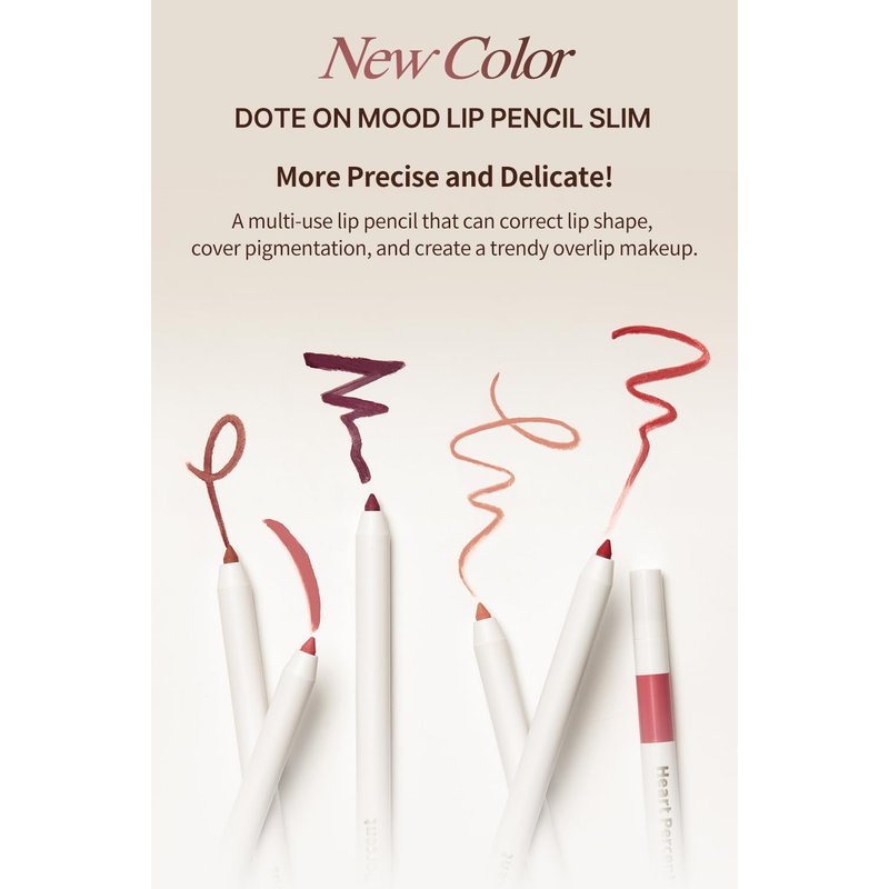 - [Perfect Mood Board] Finally we custom the lip pencil shades based on the personal color analysis. What is your skin's undertone? Warm, Cool, or Neutral? With a wide range of lip pencil colors, Heart Percent Dote On Mood Lip Pencil Slim allows a gorgeous makeup according to your own personal color. Our MLBB lip crayon liner options are endless!