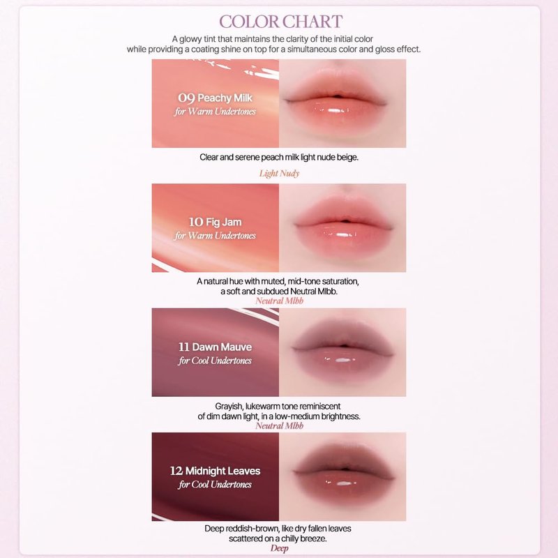 - [05 Rosy Balm for Warm Undertones] A neutral fresh rose reminiscent of a dewy, freshly bloomed rose. Neutral mlbb. A glowy tint that maintains the clarity of the initial color while providing a coating shine on top for a simultaneous color and gloss effect.