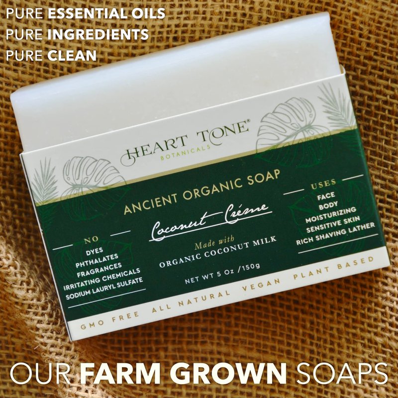 Our Ancient organic soap is a head to toe soap bar made with moisturizing organic plant oils and extracts. Some of the various herbal extracts we use are grown, harvested, and extracted on our family farm. These fresh herbs are harvested and extracted in house through a cold process method to insure that the maximum beneficial properties remain preserved and infused into the final products. The Results are a superior soap bar that feeds, nourishes and cleanse’s the skin leaving it fresh and smooth. Once you have tried our handcrafted soaps you will never go back to conventional mass produced soap products again. Let your soap be as pure as your skin.