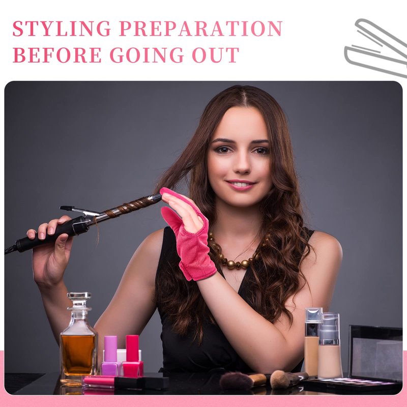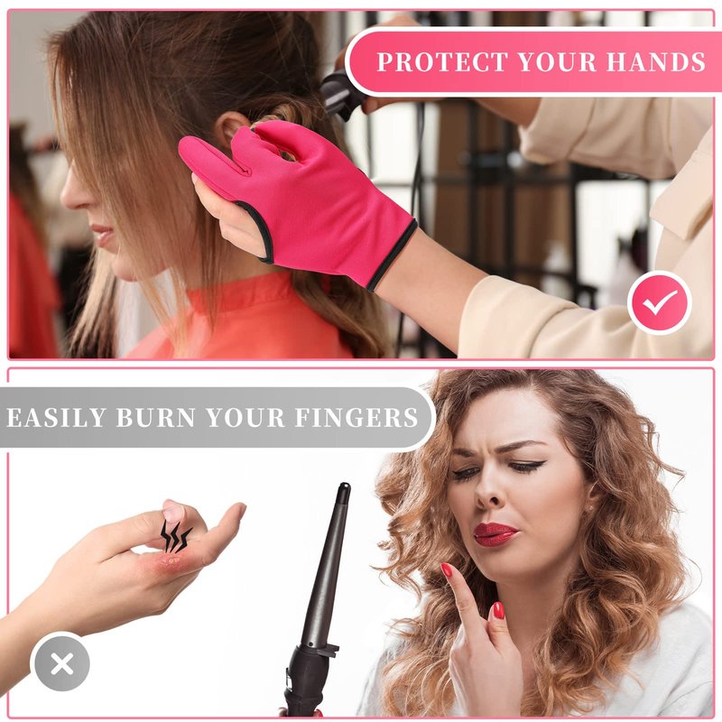 Heat Resistant Gloves for Hair Styling 2 Pcs Curling Wand Glove 3 Finger Barber Glove Reusable Hair Dye Heat Protector Glove (Rose Red)