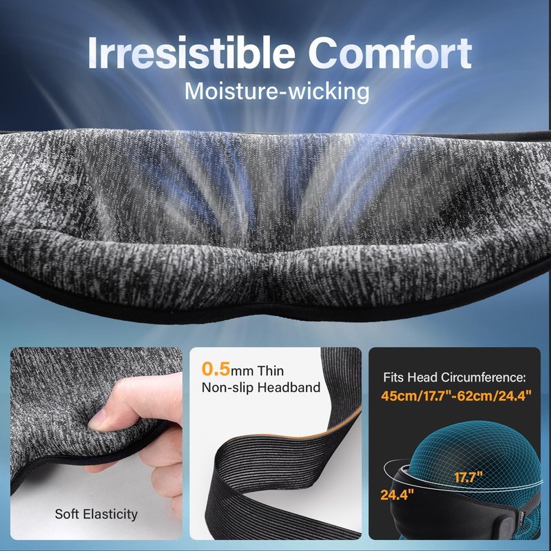 - 𝐓𝐚𝐢𝐥𝐨𝐫𝐞𝐝 𝐂𝐨𝐦𝐟𝐨𝐫𝐭, 𝐎𝐩𝐭𝐢𝐦𝐚𝐥 𝐓𝐞𝐦𝐩𝐞𝐫𝐚𝐭𝐮𝐫𝐞: Heated eye mask combines comfort and functionality seamlessly. With carefully chosen fabric layers, it offers light-blocking, therapeutic heat, moisture absorption, and breathability. The 3D eye socket design prevents friction for sensitive eyes, while maintaining the recommended temperature range of 116-138°F as advised by doctors. Plus, the ultra-thin (0.5mm) headband provides a secure, barely noticeable fit for head sizes ranging from 17.7"-24.4"