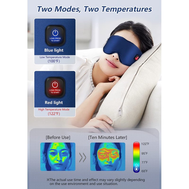 - [Heated Eye Mask] Using a heating Pad with high thermal conductivity and high heat insulation, this Heated Eye Mask can heat up instantly within 10 seconds, evenly heat the eye area, relieve dry eyes, fatigue, stye, blepharitis, chalazion, MGD.