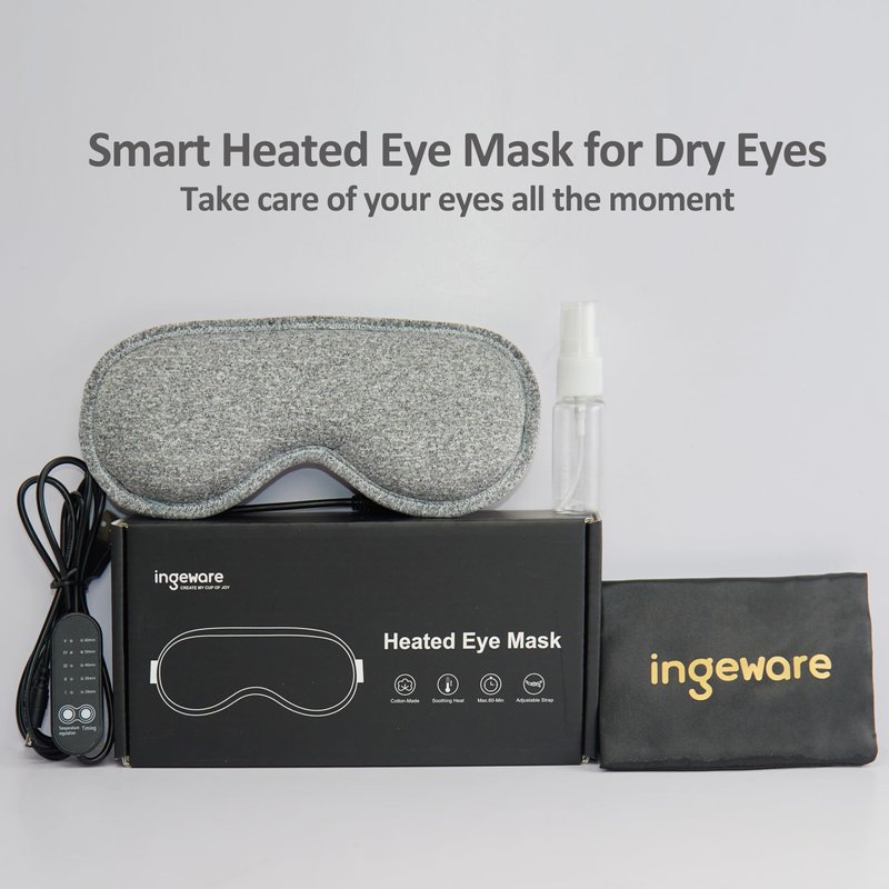 Heated Eye Mask for Dry Eyes, ingeware Eyes Heating Pad with Temperature Timer Control Warm Eyes Compress (Dark Grey)