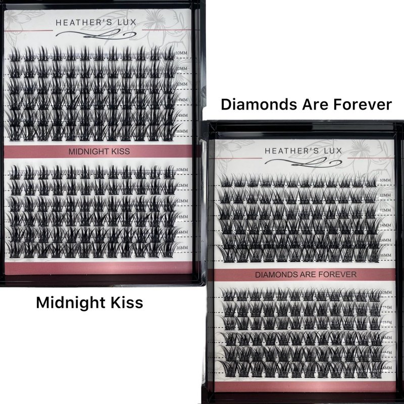 HEATHER'S LUX DIY Lash Extension Kit, Lash Kit, Eyelash Kit, Lash Extensions, Individual Lashes, Cluster Lashes available in 5 different styles: Caviar, Champagne Toast, Diamonds Are Forever, Midnight Kiss and VIP. Individual lashes come in different millimeter (mm) lengths so you can mix them and create your own look. Comes with 144 individual lashes, tweezers, lash bond, lash seal and lash remover. You can be assured you're buying a quality product...that's why I put my name on it! Heather