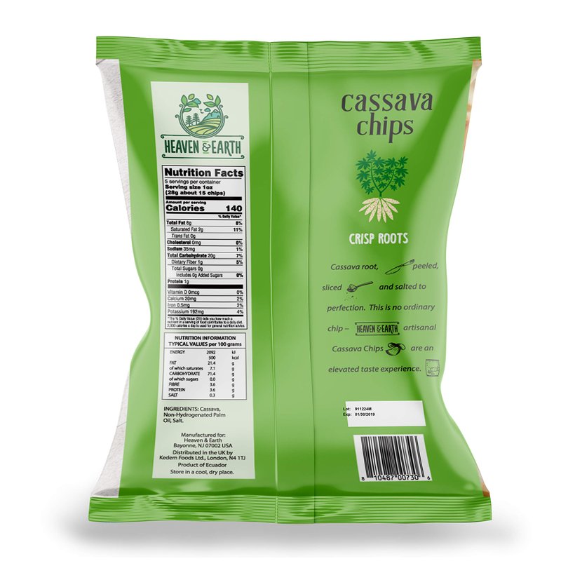 - ARTISINAL CHIPS – Heaven and Earth Cassava Chips are meticulously crafted resulting in a snack that is truly exceptional. Made from cassava root vegetable, these chips are carefully prepared to ensure a satisfying crunch with every bite. With a focus on quality, we deliver a chip that boasts a deliciously natural taste you won't find anywhere else.