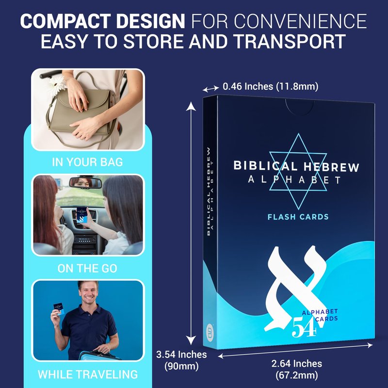 - PORTABLE & CONVIENNENT: Standard playing card size makes them easy to carry. Practice your Hebrew skills anytime, anywhere, perfect for students on the go