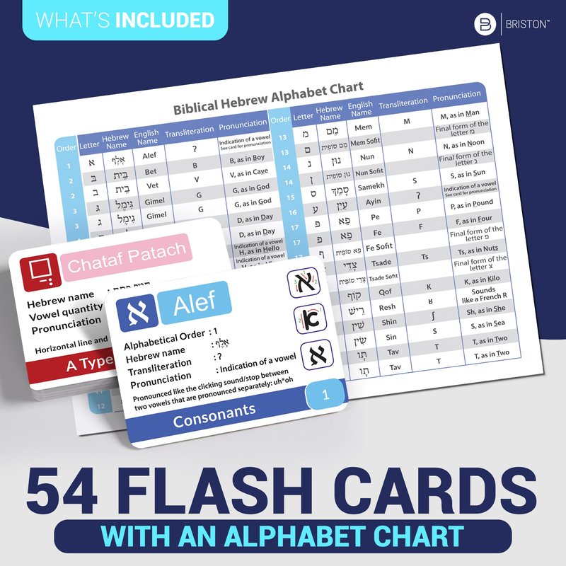 - LEARNING TOOL: Our 48-card Hebrew Alphabet Flash Card set includes the letter, name, stroke order, pronunciation, and transliteration. It’s a complete solution for mastering the Biblical Hebrew language, ideal for visual and auditory learners