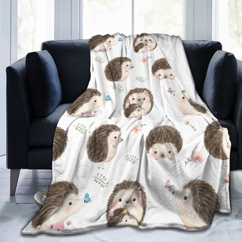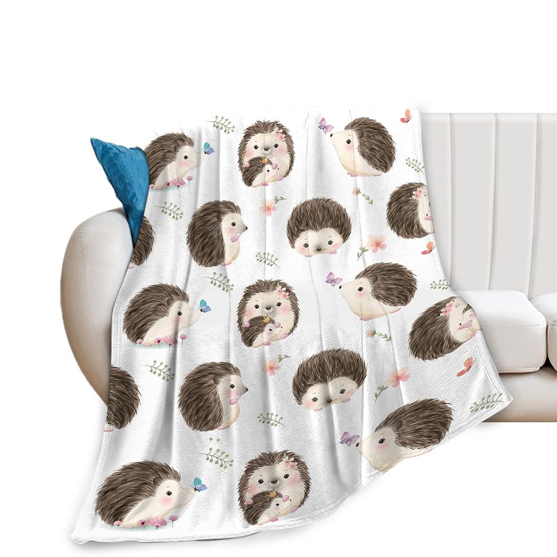 Hedgehog Blanket Cozy Plush Flannel Fleece Cute Animal Throw Blanket for Boys Girls Kids Ultra Soft Lightweight Fuzzy Nursery Blankets Gifts for Bed Couch Sofa 50"x40"