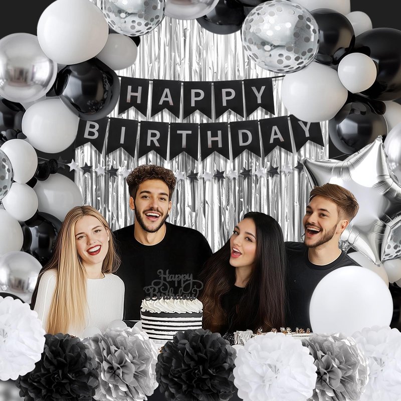 - Vibrant Black and Silver Color: Add a lively touch to your birthday party with our black and silver decorations. Showcasing an assortment of eye-catching and vibrant tones, our decorations will create a lively and festive atmosphere that your friends and family will love