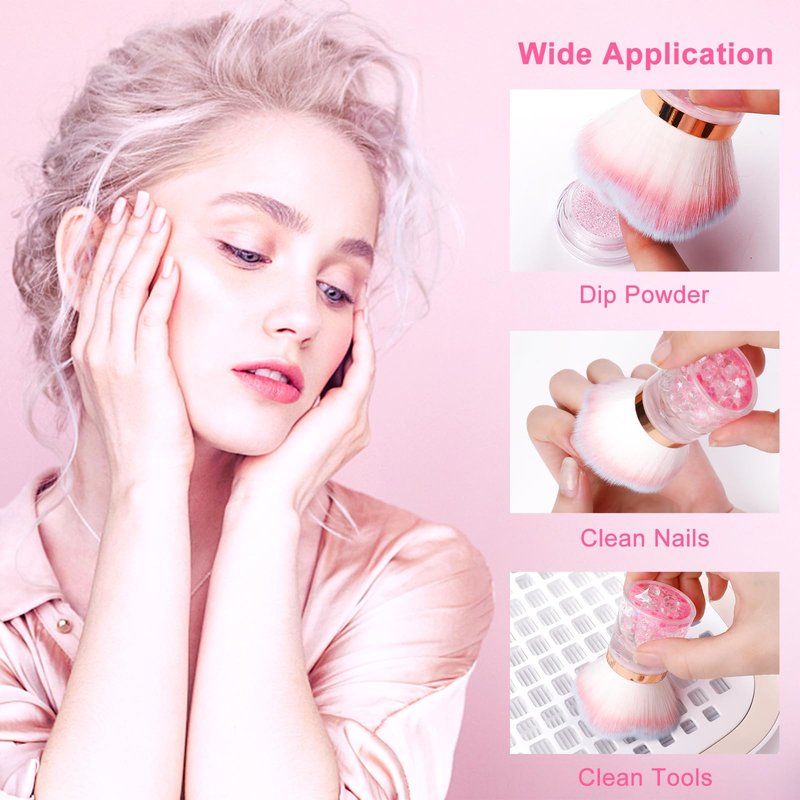 - Multiple Application: For this nail art dust brush, you can not only brush excess nail dip powder off nails or dust collectors, but also dust off nail rubble and particles, ensuring a clean and tidy workspace. You can also regard it as a blush brush and loose powder brush because of large, soft, rounded bristles. The nail duster brush is able to gather a good deal of powder and hold not out until you apply it to your skin