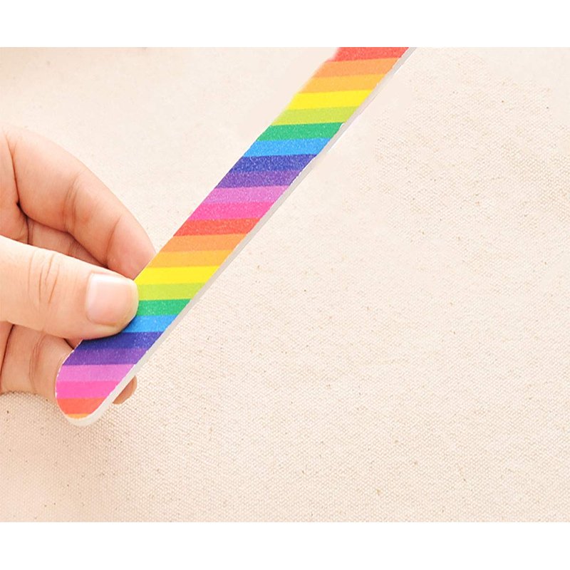 Nail files set is ideal for filing and roughing up hard fingernails and toenails with 100 grit, while 180 grit smooths up your nail edge with a refined shape. MEDIUM GRIT (180) - Gently shapes gel/acrylic nails of medium thickness and shapes the free edge of nails. Whether your nails are chipped, bristled, or just require daily maintenance, these will surely become your best tools. Color: Colorful Per Size: Length 17.5cm/7.0" x Width 2cm/0.8" x Thickness 0.4cm/0.16" Suitable for: nail salon, nail competition, makeup studio, or home use. You won't need to spend more money at beauty salons next time.