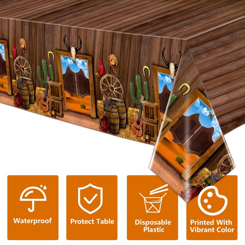 - PREMIUM MATERIAL - Western party tablecloth selected environmental-friendly and smooth surface PE material. Waterproof material could protect your table perfectly during the party.