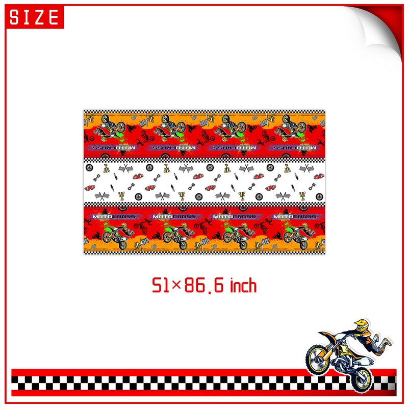 - 🎉【Products include :】 1 happy birthday banner, 1 dirt Bike background, 18 balloons, 1 dirt Bike tablecloth, 10 9-inch plates, 10 7-inch plates, 10 forks table knife and spoons each,20 napkins 1 happy birthday cake toppers, 12 dirt bike cupcake toppers.