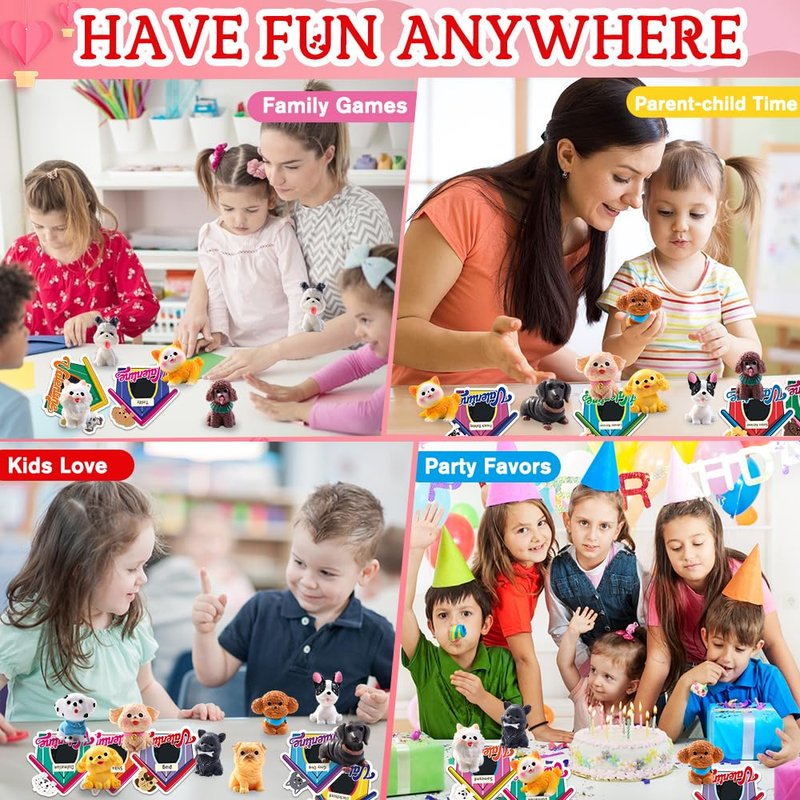 Heirloom Haven 24 Packs Valentines Day Gift Cards with Toys, Miniature Resin Puppy Dog Animals Figurines Valentines doghouse Cards for School Class Valentines Gifts Box for Kids Party Favors Exchange