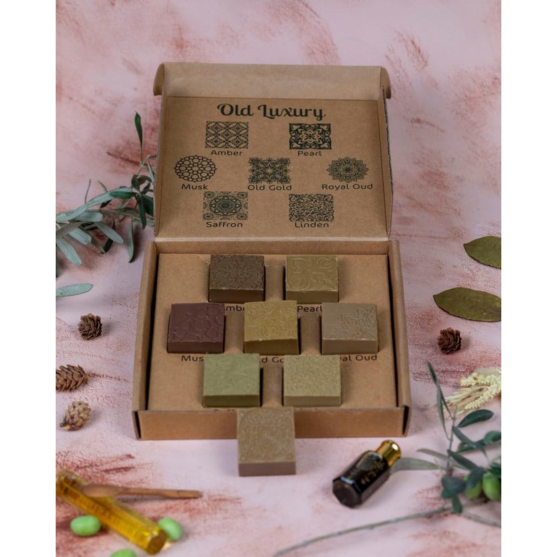 - Explore the Luxury of a Variety Pack with 7 Exquisite Scents: Immerse yourself in a world of opulence 4 to 4.5 % high quality essential oil scent, with our variety pack of 7 soap bars. Delight your senses with fragrances like Royal Oud, Amber, Pearl, Musk, Old Gold, Saffron, and Linden. This eco-friendly set is not just a treat for yourself but also an ideal luxury gift set for those who appreciate the finer things in life.