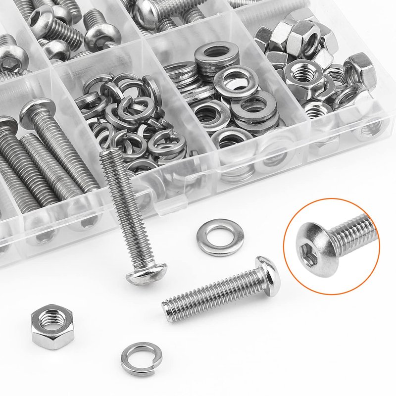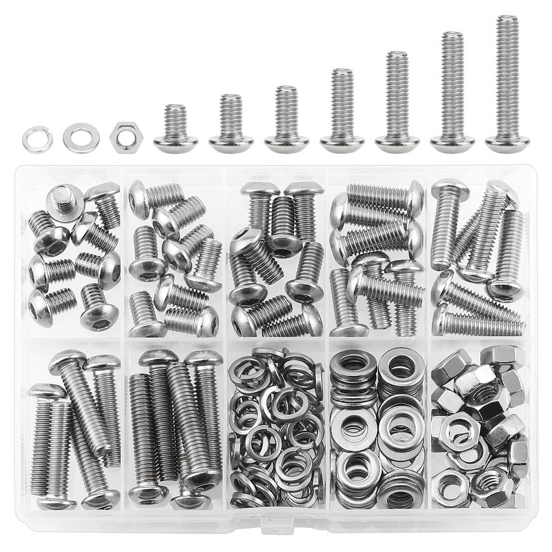 【Package Quantity: 147 Pieces M6 Button Head Socket Cap Screws, Lock washers, Flat Washers and Nuts】
