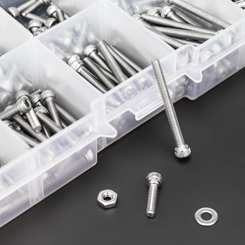【Package Quantity: 420 Pieces 8 Sizes M2.5 Hex Socket Cap Screws, Flat Washers and Nuts】