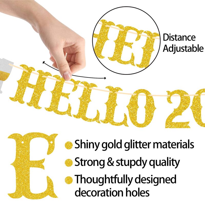 The happy new year banner is made of high quality cardstock, which is safe and non-toxic. Sturdy and durable as new year decorations.