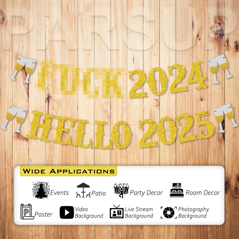 Hello 2025, Happy New Year Banner, New Years Eve Party Supplies 2025 | Happy New Year Party Decorations | NYE Party Decorations | Happy New Year Sign