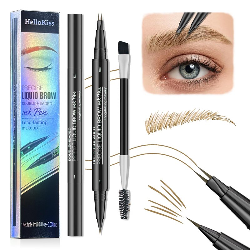 Hello Kiss Curved Eyebrow Pen, Trailott Eyebrow Pen 2 Fork Tip, Hello Kiss Microblading Eyebrow Pencil Waterproof, Hellokiss Curved Microblading Liquid Eyebrow Pen Long-Lasting (01#LIGHT BROWN)