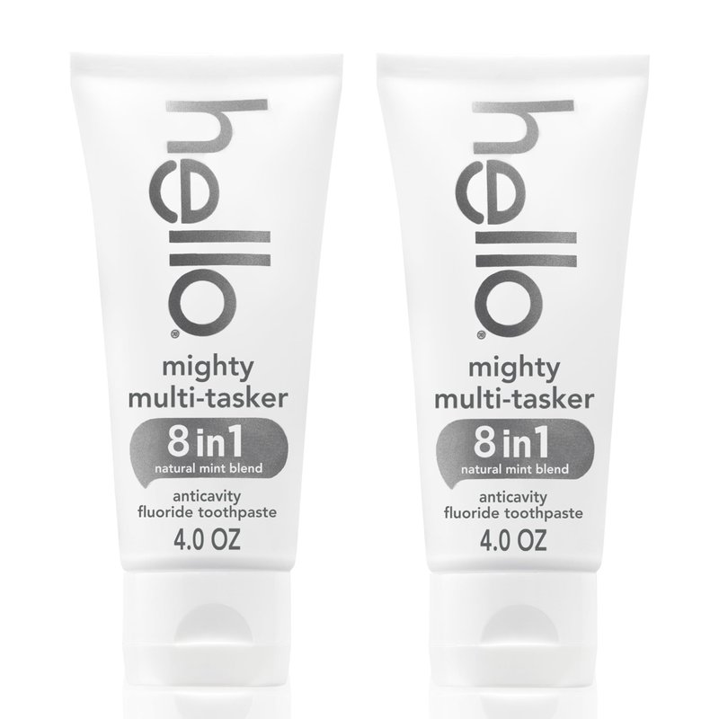- Includes two (2) 4.0 oz. tubes of hello Mighty Multitasker Fluoride Toothpaste, Hello Fluoride Toothpaste Pack