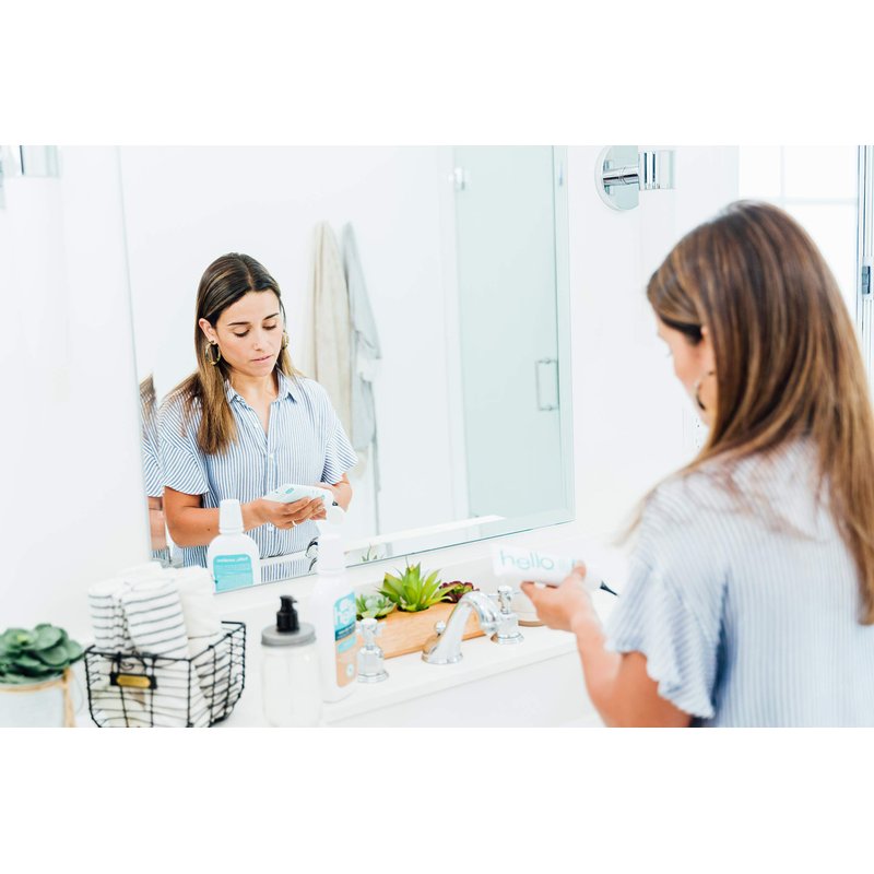 - Hello naturally friendly antiplaque + whitening SLS free toothpaste is thoughtfully formulated with epically refreshing farm grown peppermint, tea tree oil to tame bad breath, and coconut oil to moisturize.
