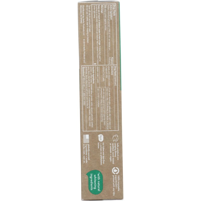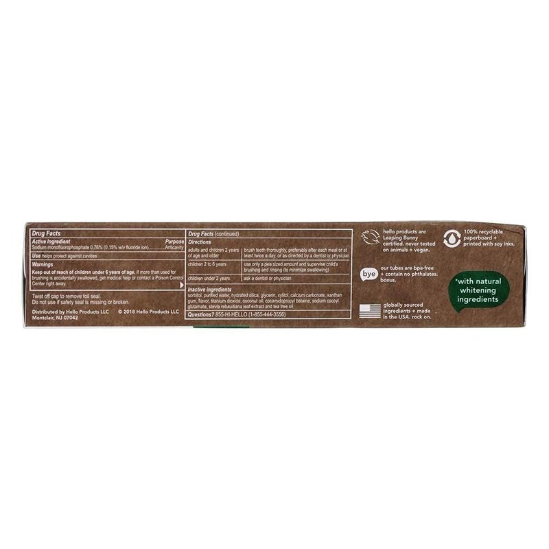 Hello Oral Care Naturally Whitening Fluoride Toothpaste, Vegan & SLS Free, Farm Grown Mint with Tea Tree Oil Coconut Oil, 4.7 Ounce