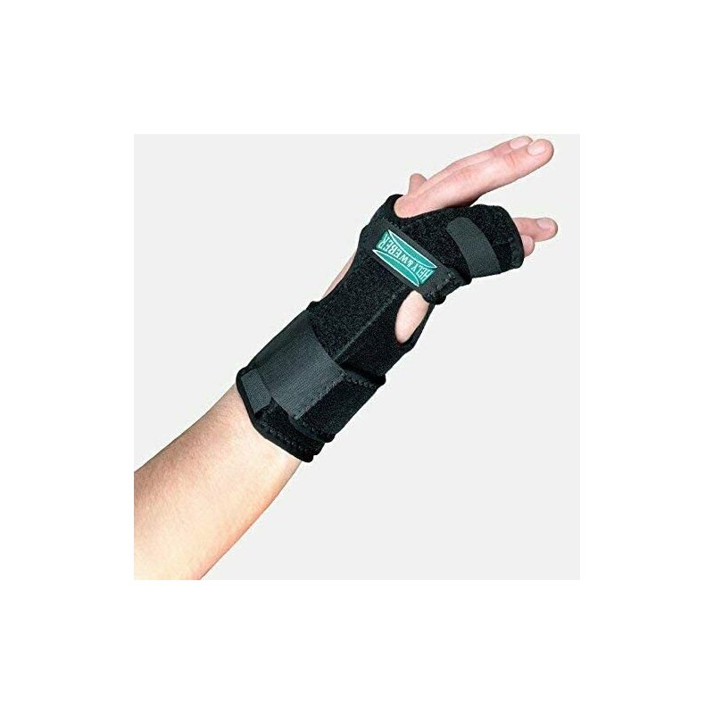 The Hely Weber TKO (The Knuckle Orthosis) Boxer's Fracture Splint is the most versatile brace for hand injuries including metacarpal fractures, or collateral ligament injuries of the phalanges. The TKO effectively immobilizes the hand to not allow rotation of the fourth/fifth fingers. It's suitable for both non-surgical treatment, as well as, for protection following surgical reduction of a metacarpal fracture. This Boxer's fracture splint has a "window" to accommodate pins in the fourth or fifth metacarpals on the medial side of the brace, and a moldable, padded aluminum stay to maintain the required degree of PIP flexion for a collateral ligament injury. The aluminum stay can be easily bent in seconds to place the last two fingers in the perfect healing position. The boxer's fracture splint is a one size fits all product that can be used on any size patient with a metacarpal fracture. Unlike hard plastic splint designs, this model is comfortable to wear day or night and can be washed in the sink if needed. The item's velcro straps are easy to fasten in place for the right level of support and comfort. If needed, the physician can examine the hand more easily compared to an applied cast, and the material will not interfere with taking x-rays of the fracture. Non-Returnable if used or altered.