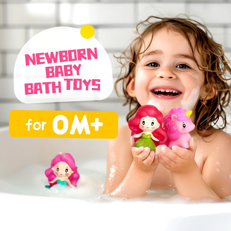 - BATH TOYS FOR BABIES 0 MONTHS AND UP- We know what parents care about! Safety is the number one priority for bath water toys. Our infant bath toys are baby-safe and parent-assured. Suitable for newborn babies age 0 months+