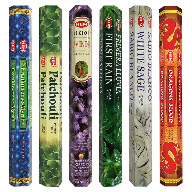 Incense and holder set #23: This is a bundled product that includes 6 most liked Hem incense sticks and incense holder. Incense sticks variety pack includes Patchouli|Precious Lavender|First Rain|White Sage|Dragon's Blood fragrances. Gift Set: Total 6 fragrances. 20 incense sticks of each fragrance. Incense holder is also included. Inciensos aromaticos - Incenses are popular in almost every culture. Traditionally incenses were used for religious and sprituality purposes. Agarbatti Sticks - Our incense sticks are non toxic all natural organic and herbal. All incense are handcrafted in India according to traditional customs using minimal tools and almost no machinery. Now a days incenses are used more as home fragrance products. Incenses are also used for spritual décor and meditation decor. Incenses are also common in witchcraft supplies.
