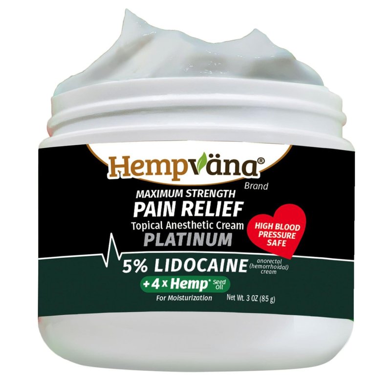 Hempvana Platinum 5% Lidocaine Relief Cream, Maximum Strength, AS-SEEN-ON-TV, Strongest Cream, Numbs Irritated Nerves for Fast Relief, Non-Greasy. Targeted Long-Lasting Relief. Enriched with Hemp