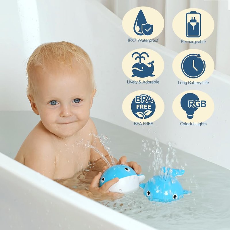 - User-Friendly, Safe, and Durable: Simply place this light up bath toy in the water, and it will automatically start spraying water while the lights begin to blink. Remove it from the water, and it will stop functioning. Made with premium ABS material, it's safe for worry-free use. Its superior waterproof performance makes it more durable than other whale bath toys