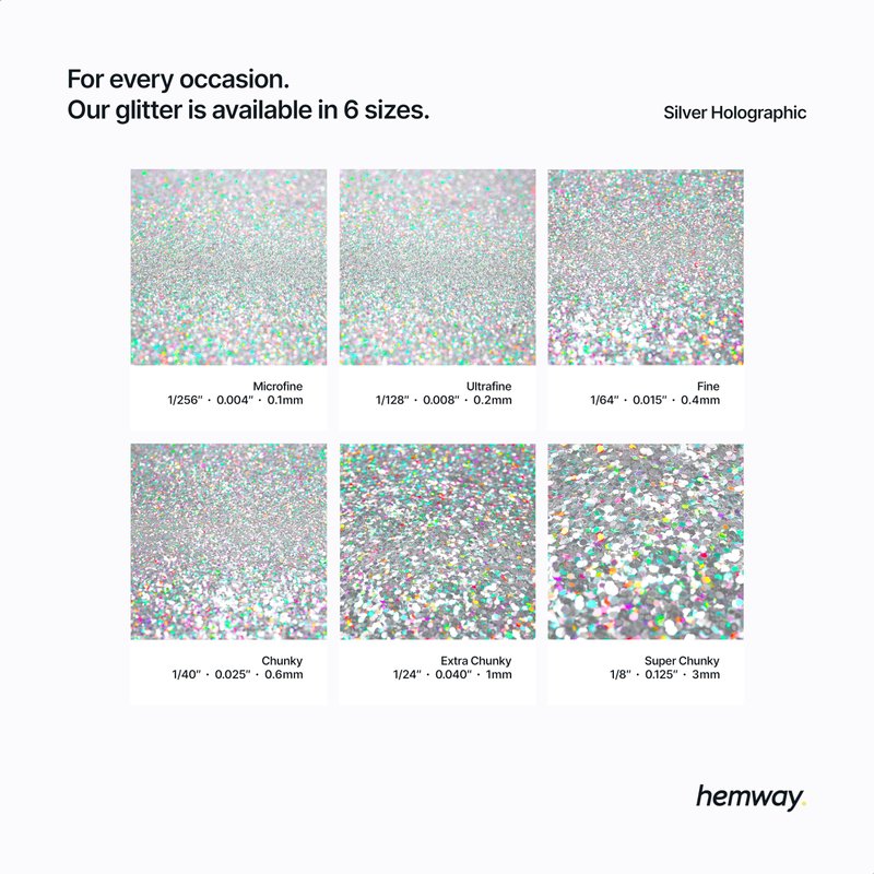 - Cosmetic Graded Hemway glitter is safe for use in makeup looks, nail art, body art, hair and lip gloss