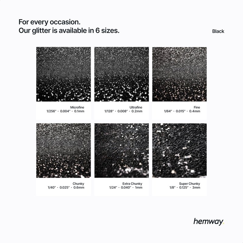 - Cosmetic Graded - Hemway glitter is safe for use in makeup looks, nail art, body art, hair and lip gloss