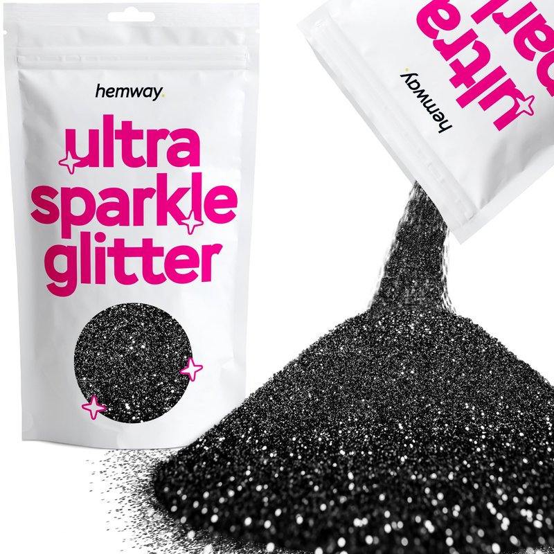 Hemway Premium Ultra Sparkle Glitter Multi Purpose Metallic Flake for Nail Art, Cosmetic Graded, Makeup, Festival, Party, Hair, Body and Eyes 100g / 3.5oz - Black