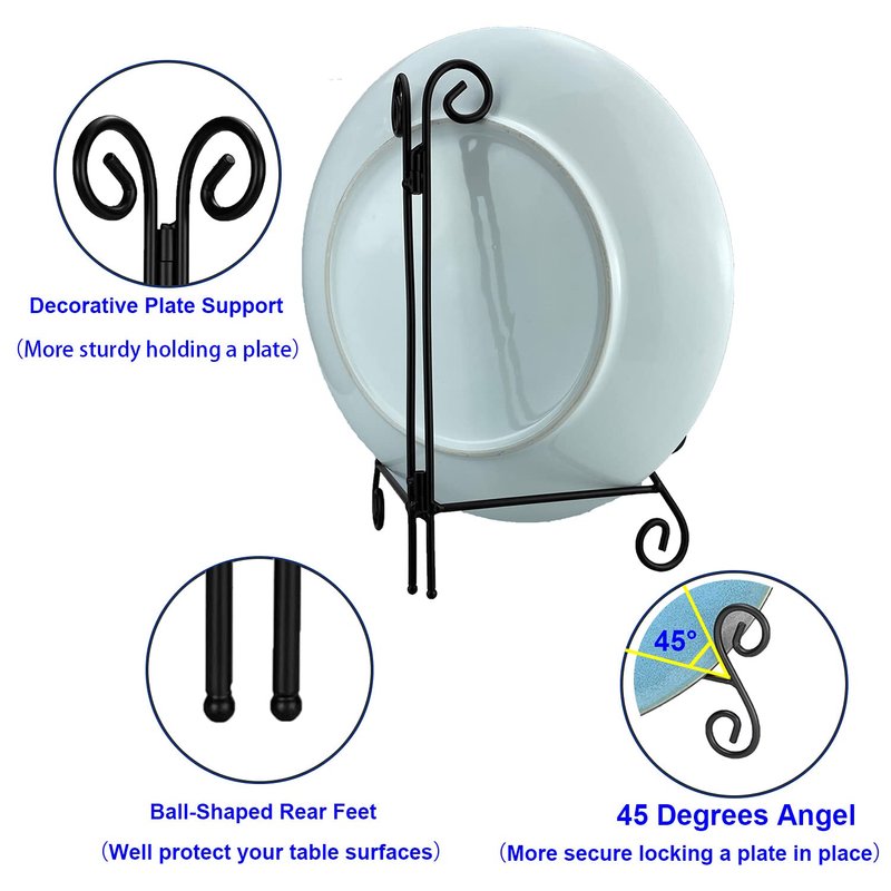 - ALL METAL MATERIAL: The plate stand was made from iron wire with sleek black powder coating features scratch resistant and rust resistant. Hight quality metal let your plates, picture frame, photos, books look more attractive.