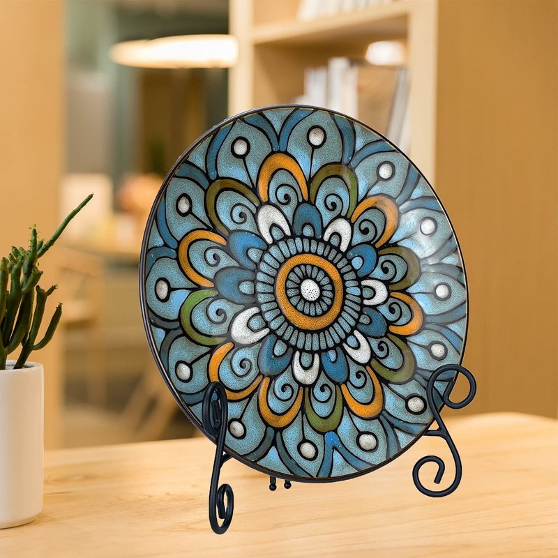 - MORE SECURE & STURDY: All feet are round shaped; it won’t scratch your table/shelf surface. Two front decorative feet and two upside decorative curved patterns will hold your plate securely (Better Than Right-Angle).