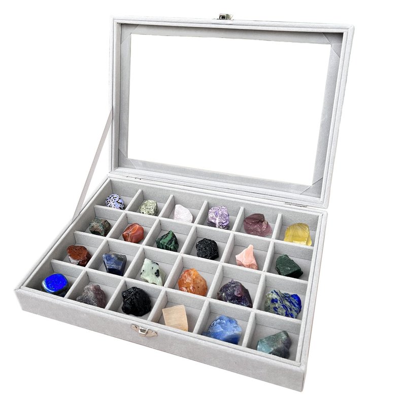 - Organized Versatility: Our rock collection display box includes a stone storage tray with 24 individual velvet grids. Effortlessly organize stones, crystals, and collectibles while maintaining easy accessibility. Versatile storage that complements your passion!