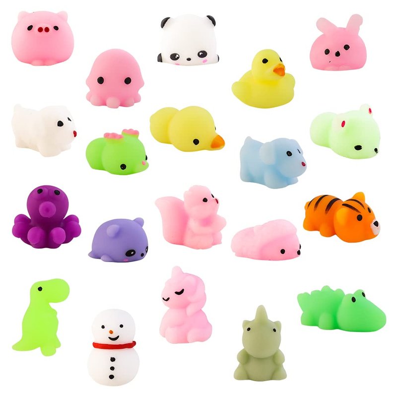 - Package: You will receive 20 pieces of mochi squishy toys in total, including a wide variety of different animals shape such as cat, bear, chicken, rabbit, seals, cloud, star, claws etc, which will be mixed randomly.