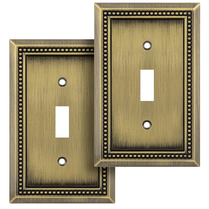 Henne Bery Sunken Pearls Decorative Wall Plate Switch Plate Outlet Cover (Single Toggle, 2PK, Antique Brass)