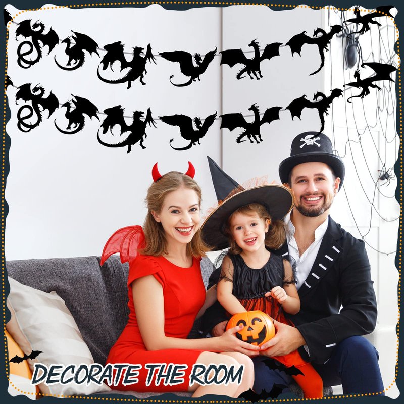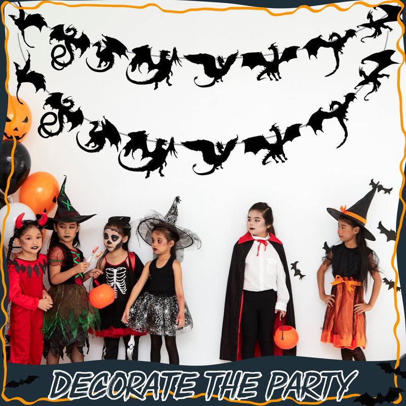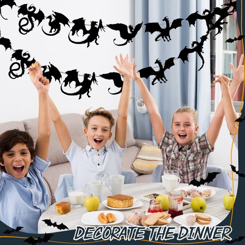 - What Will Get: there are 4 dragon theme banners in the package, each black dragon party banner has 8 black dragons of different shapes; The size of each dragon is about 5.9 x 4.7 inches, and each rope is 6.5 feet in length; They are not strung, you need to string them together by yourself