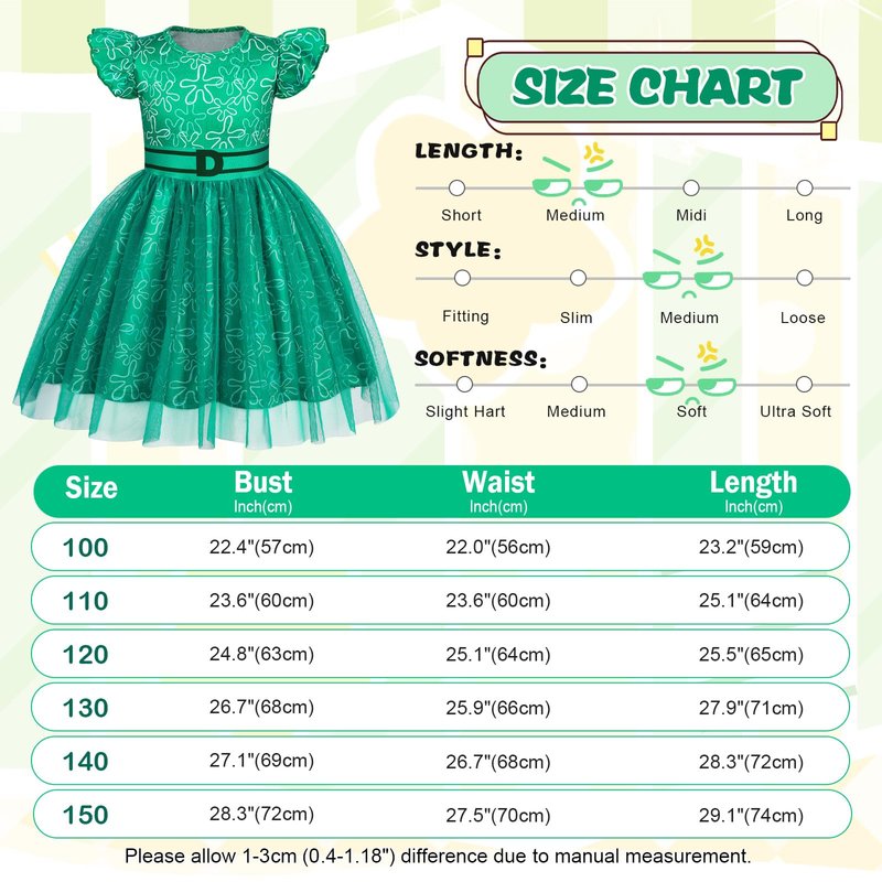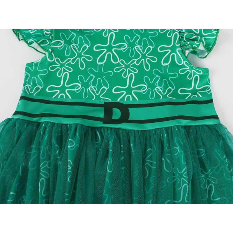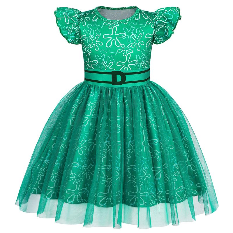 HenzWorld Disgust Costume Dress for Girls Inside&Out 2 Cartoon Disgust Costume Fancy Dress Up Flutter Sleeve Tulle Dresses Pretend Play Christmas Birthday Gifts Outfit Green Size 10 9-10 Years