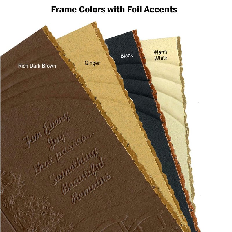 - Made from a textured cardstock veneer and printed sentiment, both with foil accents assembled on a polyresin easel-back frame.