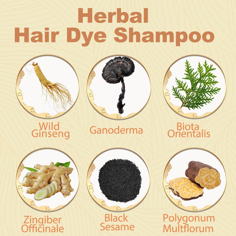 - 【UPGRADE HERBAL HAIR COLOR SHAMPOO】The upgraded formula color hair dye is more gentle,allows you to color hair as you like,no need to worry about doing harm to your hair.Wild ginseng and sesame with active ingredient that make your hair healthy,glossy and shiny.Ammonia free, paraben free,with no harsh chemicals,safe to use.