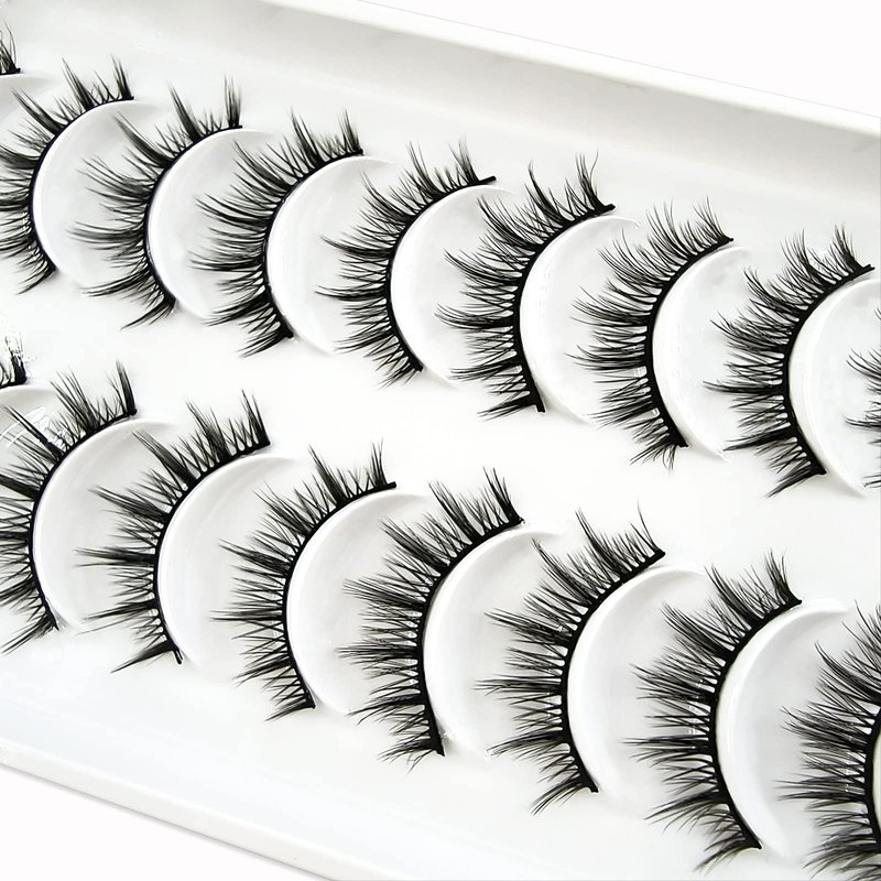 Hercks Manga Lashes Natural Lashes Wispy Lashes Natural Look, Faux Mink Lashes Fluffy False Eyelashes, 10 Pairs 12mm Short Light Volume Fake Eye Lashes Pack (08)