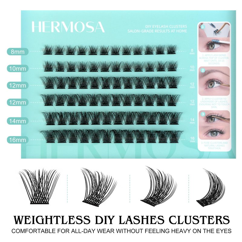 Hermosa Belleville Bliss, Cluster Lashes 72 Pcs Individual Hermosa Lash Clusters False Eyelashes Extension Natural Look, DIY Eyelash Extension Style at Home HMDIY-4